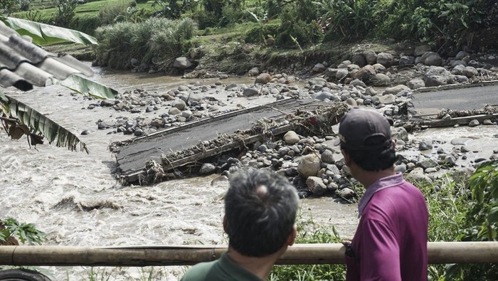 Kepala Pusat Data, Informasi dan Komunikasi Kebencanaan BNPB Abdul Muhari mengatakan bahwa kerusakan infrastruktur tersebut terjadi setelah dihantam banjir luapan aliran sungai daerah setempat Senin sore.