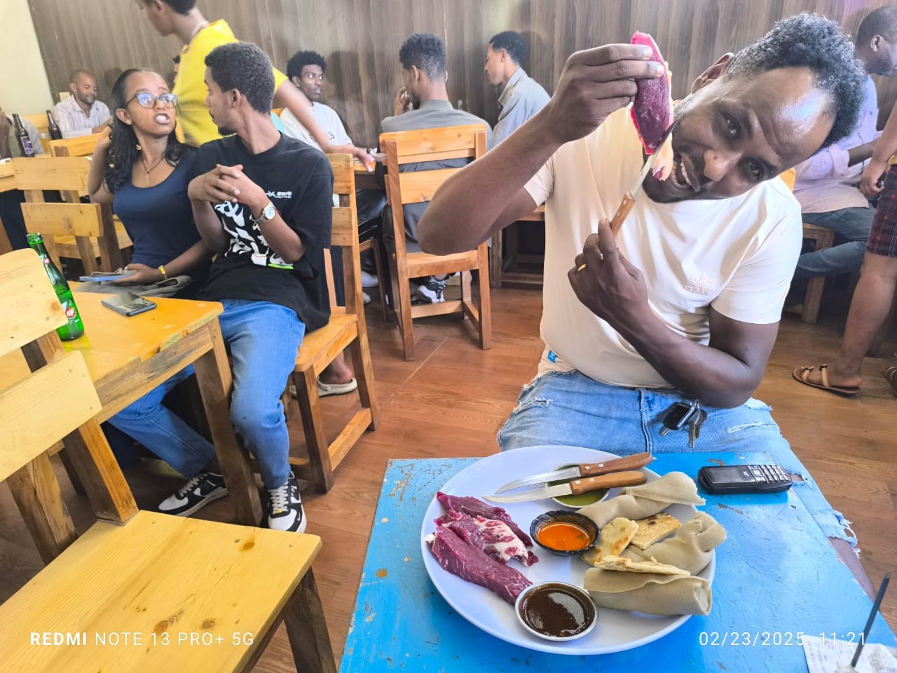 Yang bertanya itu Ny Al Busyra Basnur, istri duta besar Indonesia di Ethiopia. Saya pun tidak punya keinginan untuk mencobanya. Itulah salah satu makanan terpopuler di Ethiopia.