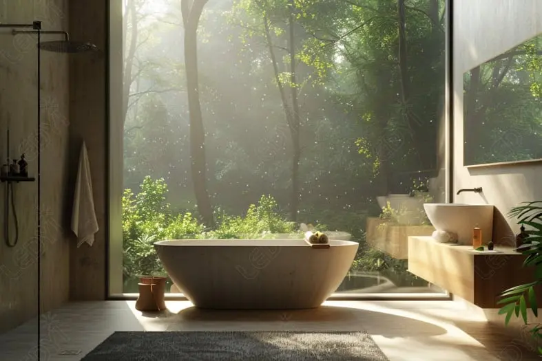 Bagi kalian suka dengan kamar mandi nuansa alam, konsep ini sangat cocok untuk kalian sehingga menciptakan nuansa yang asri seperti pedesaan.