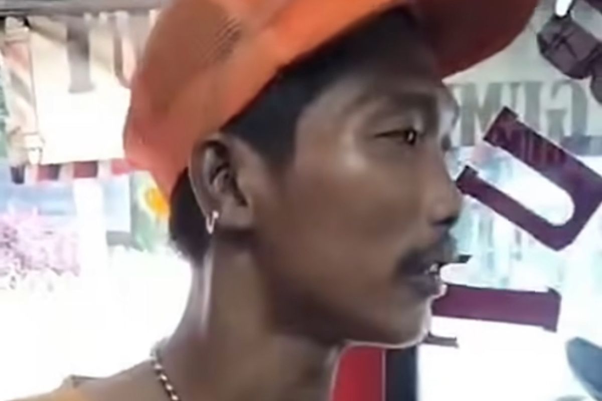 Pria tersebut viral di media social. Tampak mengenakan baju kuning dan sementara meminta THR ke tukang cukur.