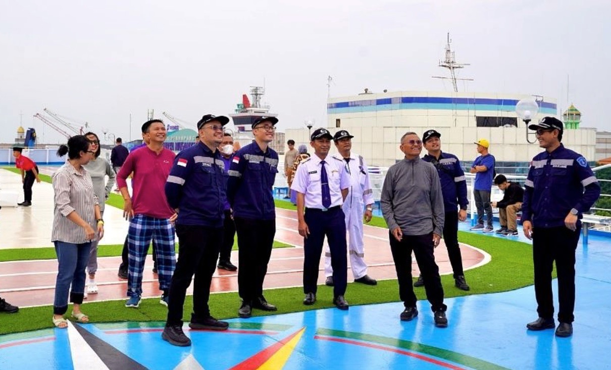 Masih ada waktu 1,5 jam sebelum berbuka puasa. Ia mengajak kami tour de ferry. Naik turun ke semua lantai: ke restoran. Ke ruang karaoke. Ke masjid. Ke jogging track.