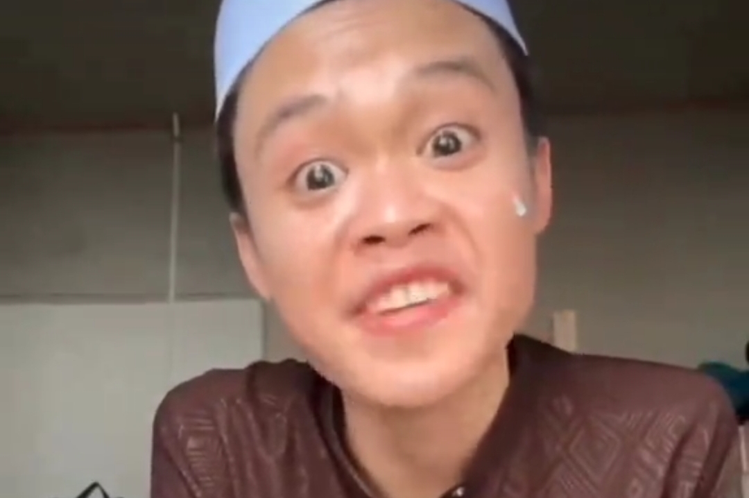 Dalam video tersebut, Fajar nampak mengenakan pakaian salat atau gamis pria warna cokelat dan peci putih.