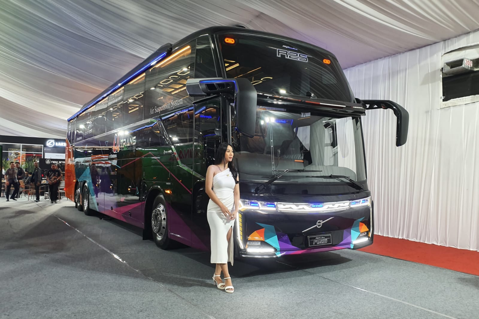 “Apa yang ada di bodi R22 kini sudah tidak ada lagi di bodi bus R25. Kami melanjutkan karakter DNA saja dari Skylander R22. Lalu ada tambahan spoiler di bagian belakang atas untuk sisi aerodinamis,” ucap Deddy Hermawan.