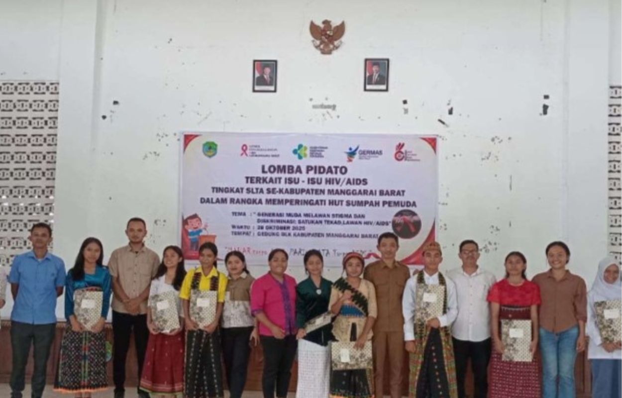 finnews.id – Siswa-siswi SLTA di Kabupaten Manggarai Barat menegaskan komitmen mereka melawan HIV-AIDS di atas podium Lomba Pidato memperingati momentum Sumpah Pemuda 28 Oktober 2025. Lomba ini diselenggarakan oleh Komisi Penanggulangan AIDS (KPA) Kabupaten Manggarai Barat bertempat di gedung Balai Latihan Kerja (BLK) Labuan Bajo.