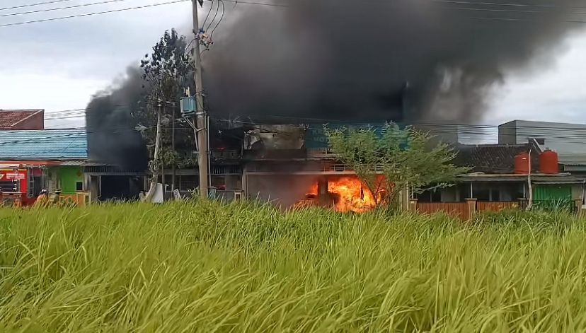 Dalam waktu singkat, kobaran api menjalar ke seluruh area gudang yang dipenuhi bahan mudah terbakar seperti oli, suku cadang motor, serta material bengkel lainnya.