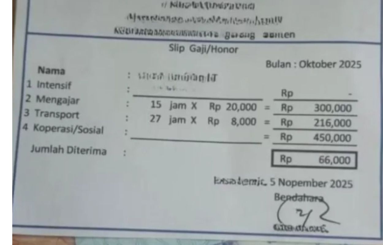 Peristiwa ini kembali menyoroti mirisnya kesejahteraan sebagian tenaga pendidik di Indonesia, terutama mereka yang masih berstatus honorer.