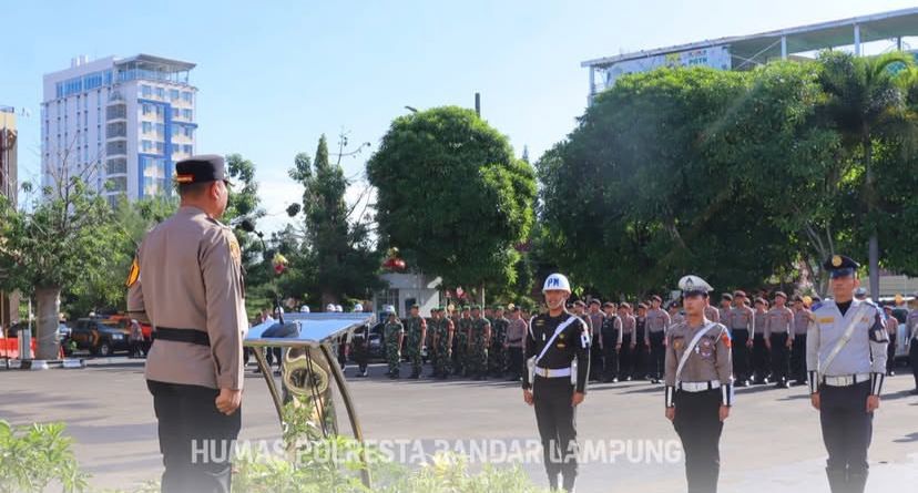 Apel tersebut dipimpin Kapolresta Bandar Lampung, Kombes Pol Alfret Jacob Tilukay, dan dihadiri unsur Forkopimda, pejabat utama, serta pasukan gabungan TNI-Polri dan para stakeholder.