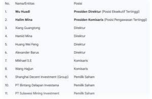 Namun, nama susunan pengurus dan pemilik PT IMIP tersebut tidak tercantum di website resmi perusahaan.