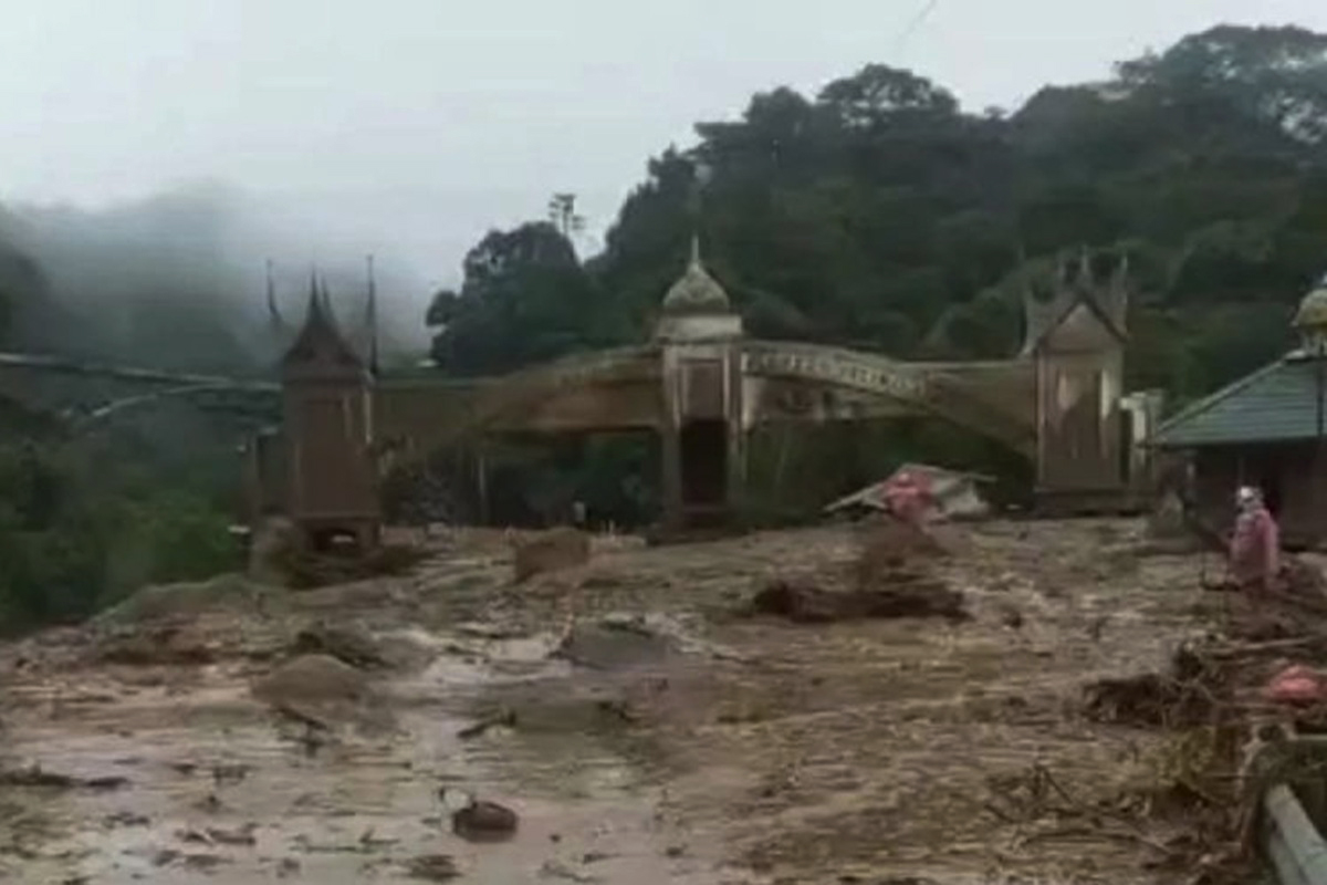 Galodo yang membawa material tanah, lumpur, dan bebatuan, menimbun jalan nasional Padang-Padang Panjang, tepatnya di gerbang Kota Padang Panjang, Tanah Datar, dan Jembatan Kembar menuju Lembah Anai pada Kamis (28/11).