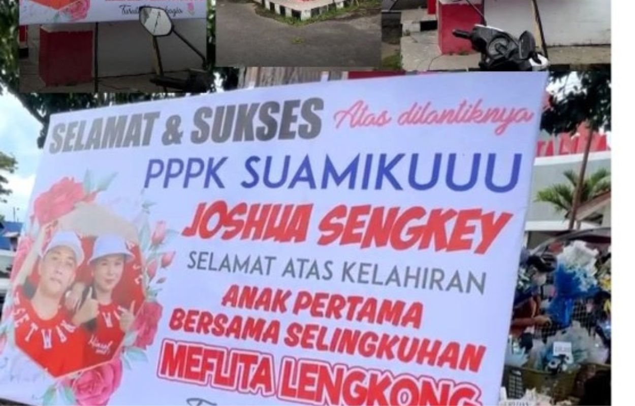 finnews.id – Sebuah peristiwa tak biasa mendadak viral di Minahasa Selatan (Minsel), Sulawesi Utara. Seorang perempuan yang disebut sebagai istri sah diduga mengirim papan ucapan berwarna pink bertuliskan “Selamat” kepada suaminya yang baru saja dilantik sebagai Pegawai Pemerintah dengan Perjanjian Kerja (PPPK), namun pesan tersebut juga menyinggung adanya perempuan lain. Hal ini dikutip Redaksi dari instagram @lambeturahkawanua pada Senin, 1 Desember 2025.