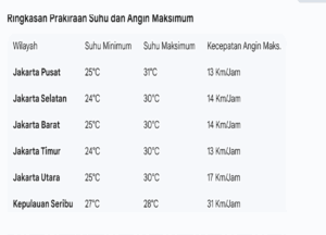 Masyarakat di seluruh DKI Jakarta diimbau untuk meningkatkan kewaspadaan, khususnya bagi yang beraktivitas di luar ruangan pada Minggu siang, mengingat potensi Hujan Sedang di Jakarta Barat dan Jakarta Selatan.