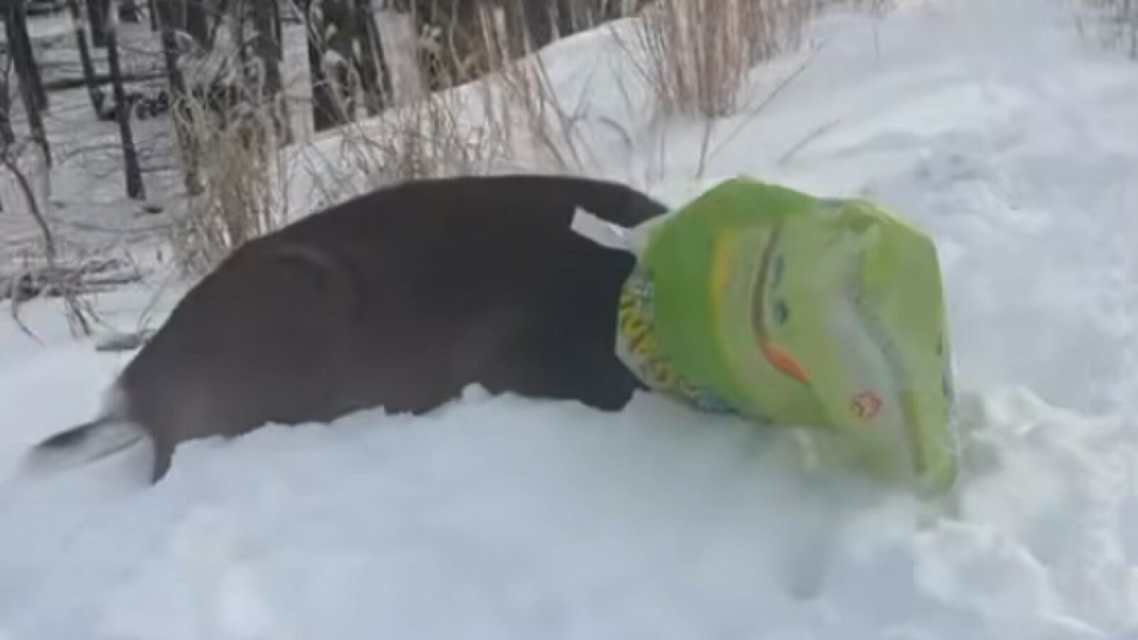 Ternyata, sang tersangka bukan manusia, melainkan seekor rusa dengan kepala tersangkut kantong plastik.