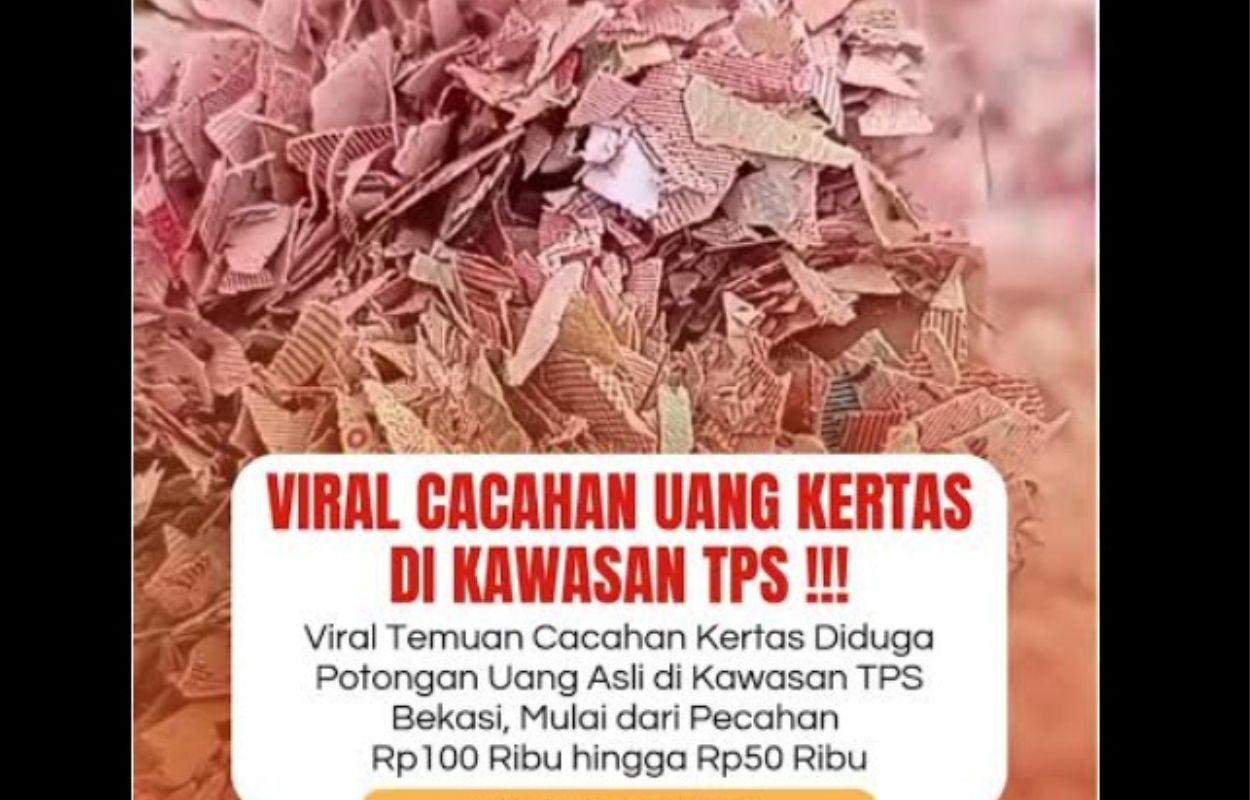 Peristiwa temuan cacahan uang kertas merah (Uang Rupiah dominasi besar) di Tempat Pembuangan Sampah (TPS) di Bekasi telah menjadi perbincangan hangat di media sosial sejak akhir Januari 2026. Video dan foto uang yang tergeletak di antara sampah menyebar cepat di TikTok, Instagram, dan X, membuat warga dan netizen penasaran akan asal-usul uang tersebut.
