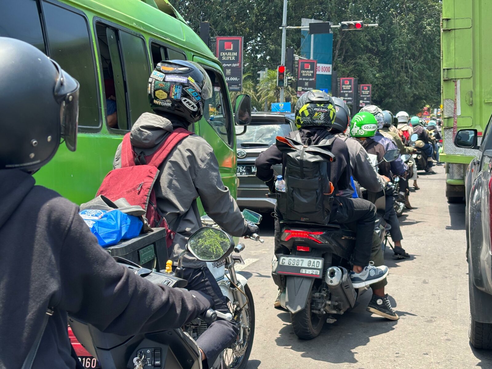 Berdasarkan pengamatan di lapangan, kecepatan kendaraan roda dua di jalur tersebut rata-rata hanya sekitar 5 kilometer per jam. Kendaraan biasanya bergerak beberapa meter, kemudian kembali berhenti karena padatnya arus lalu lintas.