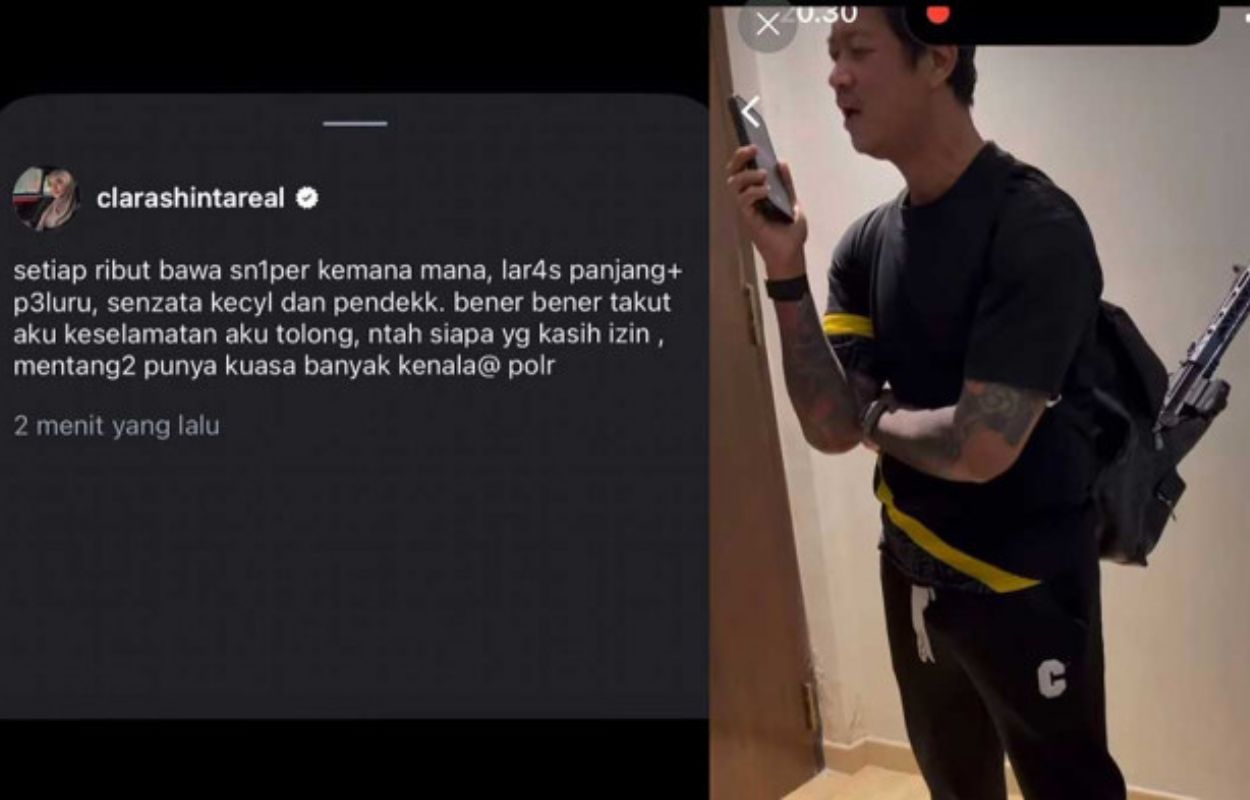 “Setiap ribut bawa sniper ke mana-mana. Laras panjang plus peluru, senjata kecil dan pendek. Bener-bener takut aku, keselamatanku, tolong,” tulis Clara dalam unggahan yang viral, Selasa, 31 Maret 2026.