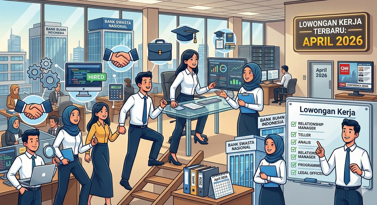finnews.id – Industri perbankan Indonesia kembali membuka pintu lebar bagi para pencari kerja pada periode April 2026. Sejumlah bank besar, baik milik badan usaha milik negara (BUMN) maupun swasta nasional, tengah berburu talenta-talenta terbaik untuk mengisi berbagai posisi strategis. Rekrutmen ini mencakup spektrum yang luas, mulai dari layanan nasabah terdepan, analis teknologi informasi (IT), hingga posisi manajerial yang membutuhkan pengalaman matang.