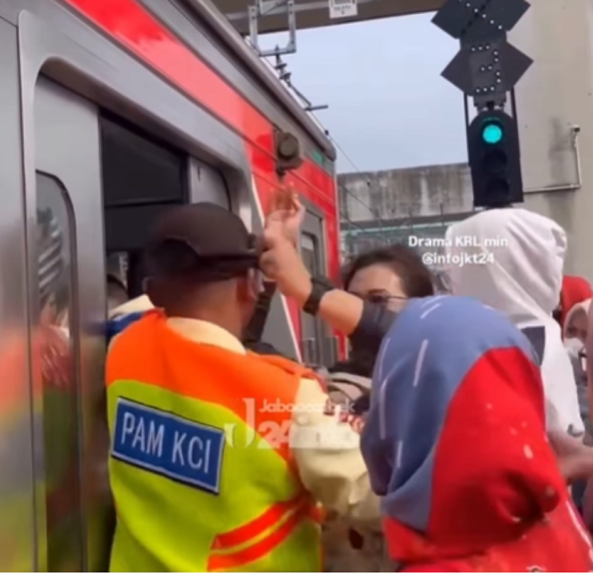 Keributan bermula ketika petugas PAM mencoba mencegah wanita tersebut masuk demi alasan keselamatan. Petugas melihat kondisi di dalam gerbong sudah tidak memungkinkan untuk menampung penumpang tambahan. Namun, alih-alih mengindahkan peringatan, penumpang tersebut justru terus merangsek masuk ke sela-sela pintu yang mulai merapat.
